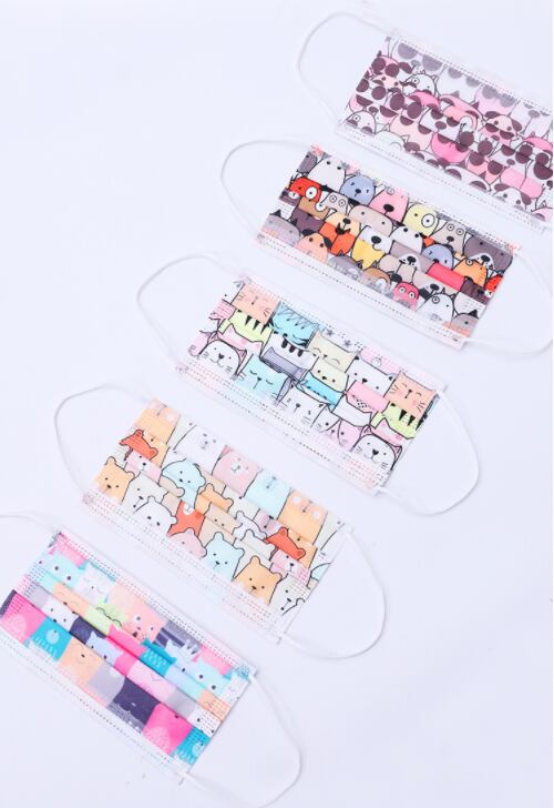 国内出荷(2011402) 2021 猫柄 大人用 不織布マスク 3層 使い捨てマスク